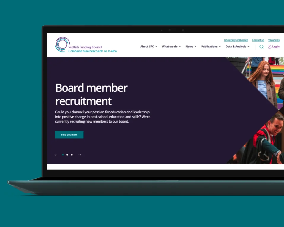 6B delivered a fully bespoke WordPress solution for the Scottish Funding Council — built with scalability, accessibility, and governance at its core. A full discovery and user research phase shaped a new information architecture and navigation model, grounded in the needs of SFC’s diverse user base — from policymakers and educators to students and journalists.